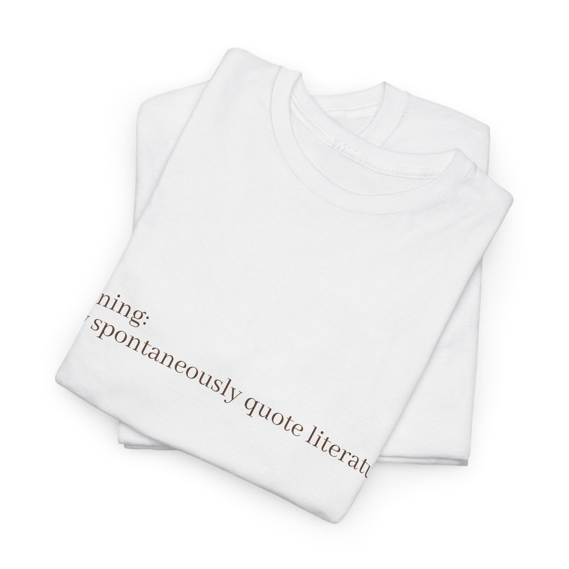 Introducing our Heavy Cotton Tee, the perfect blend of comfort and style for every literature lover. This tee brings a light-hearted vibe and is ideal for casual outings, cozy reads at home, or book club meetings. It's a must-have for anyone who loves to express their passion for reading or enjoys a clever twist in their wardrobe. Great for gifting on occasions like birthdays, holidays, or any celebration where creativity and literature are celebrated. Wear it proudly to showcase your love for words!